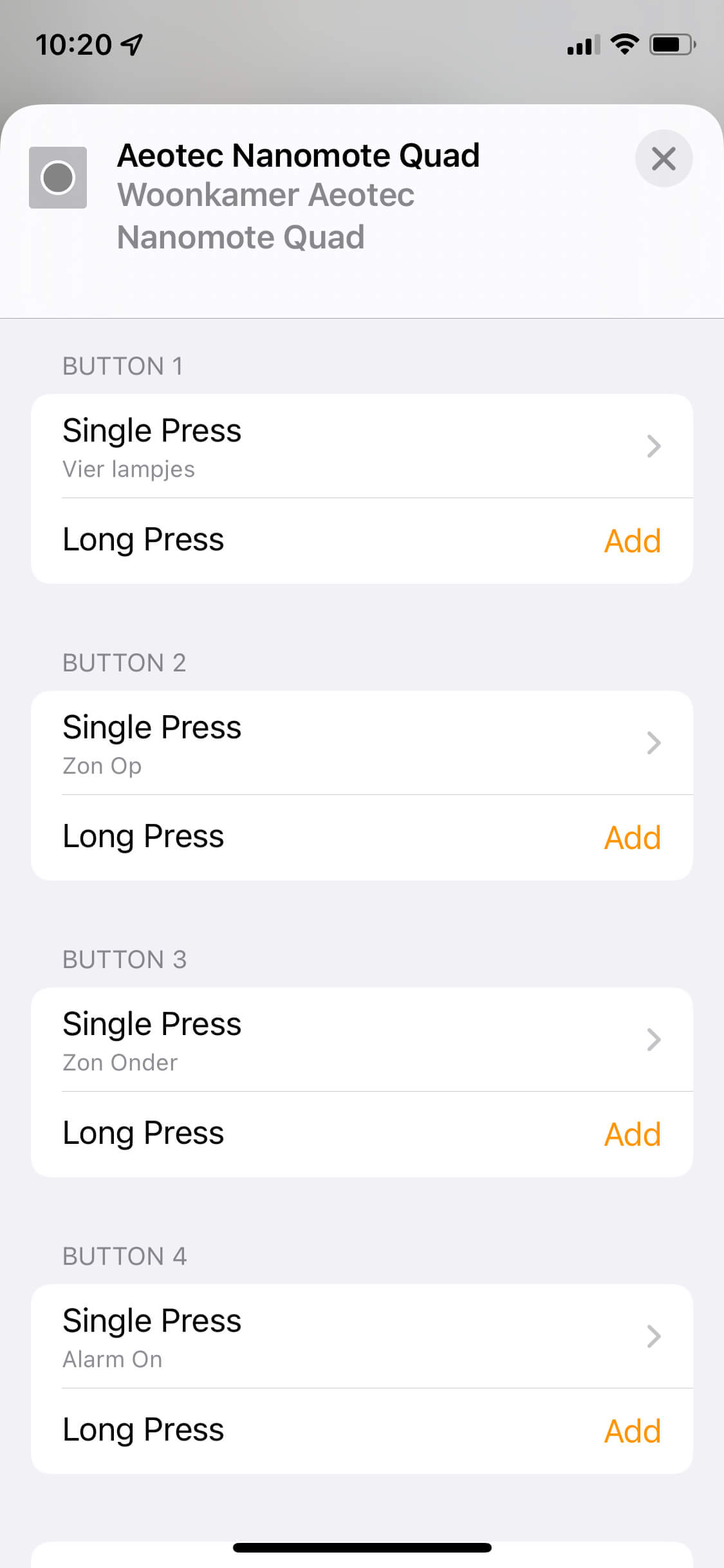 The Aeotec Nanomote Quad in HomeKit